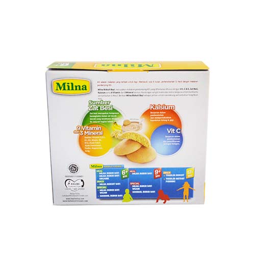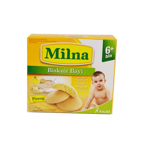 Berikanlah nutrisi yang dibutuhkan si kecil dengan memberikannya Milna Biscuit AA+DHA Pisang 6+ 130gr. Makanan pendamping ASI berupa biskuit ini diperkaya 9 Vitamin serta 3 Mineral agar tumbuh kembang bayi menjadi lebih baik.