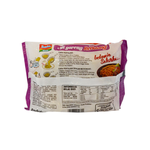 Mi goreng instan dengan bumbu rasa rendang yang lezat. Tekstur mi yang kenyal membuat makan jadi lebih nikmat. sangat istimewa bersama keluarga Anda.