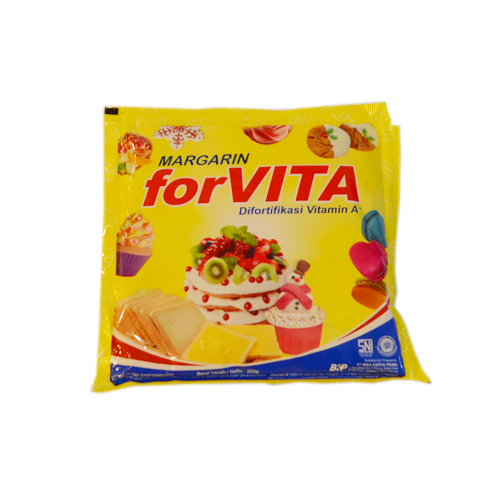 Merupakan margarin sehat dengan fortifikasi Vitamin A yang diolah & diproses secara higienis untuk menghasilkan masakan yang sehat & lezat. Margarin forVITA dibuat bebas lemak trans yang merupakan lemak berbahaya bagi kesehatan sehingga aman dikonsumsi dan baik bagi kesehatan. Lemak trans diketahui dapat menurunkan kadar LDL (low-density lipoprotein)