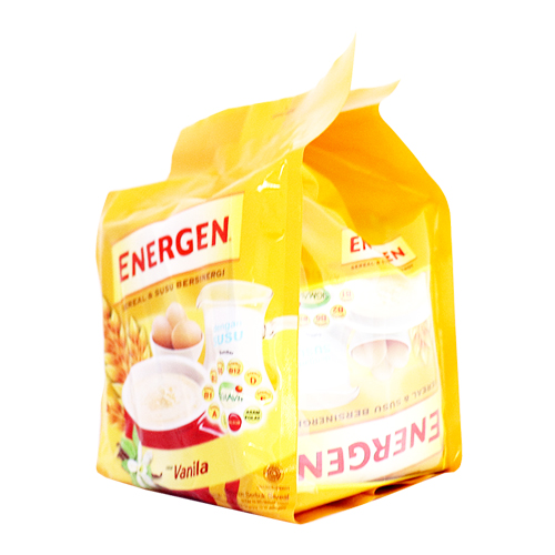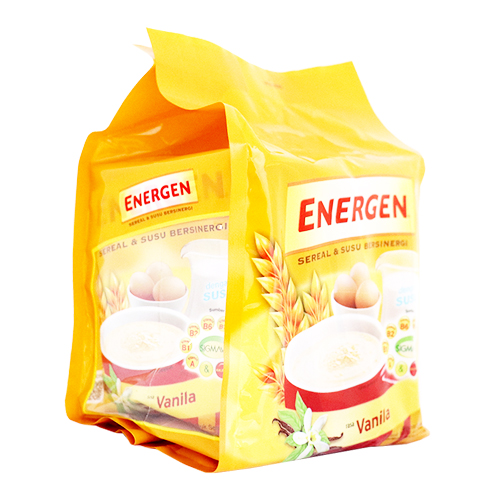 Energen vanilla merupakan minuman sereal yang memiliki kandungan susu bergizi, mengandung berbagai macam vitamin B, A, D, E, dan kalsium serta asam folat yang sangat bagus untuk tubuh Anda. Minuman sereal ini sangat cocok Anda konsumsi di pagi hari sebagai sarapan di setiap pagi Anda. Minuman sereal ini memiliki kemasan yang praktis dan mudah untuk Anda konsumsi.