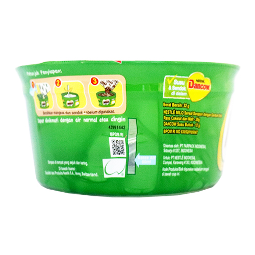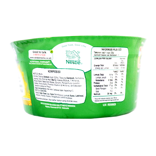 Milo Sereal Cup 20gr merupakan sereal sarapan berenergi dengan rasa coklat Milo lezat yang diformulasi untuk memberikan nutrisi pada anak dalam masa pertumbuhan dan mendukung aktivitas hariannya lebih optimal. terbuat dari gandum utuh (whole grain) dan mengandung 8 vitamin (Vitamin B1, B2, B3, B5, B6, B9, B12 dan vitamin C) yang dapat membantu tubuh menghasilkan energi secara lebih optimal. Juga diperkaya dengan kandungan Kalsium dan Zat Besi yang baik untuk pertumbuhan si kecil. Dengan kemasan praktis di dalam cup, ibu cukup menambahkan susu, dan sarapan sehat pun siap disantap.