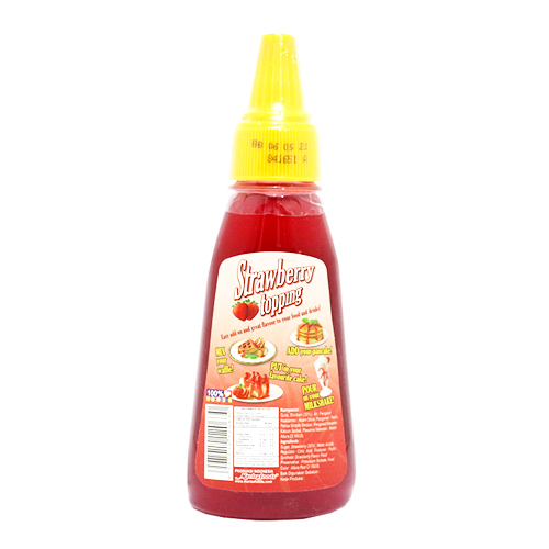 Mariza Topping Strawbery 200gr kemasan botol yang unik dan praktis sehingga mudah digunakan. Penambah rasa yang dapat ditambahkan pada berbagai macam makanan dan minuman dan terbuat dari buah Asli