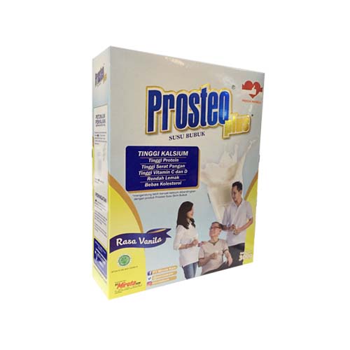 Susu Prosteo Plus merupakan susu tinggi kalsium yang dilengkapi dengan inulin, Vitamin C, Bebas kolesterol dan Rendah lemak.
